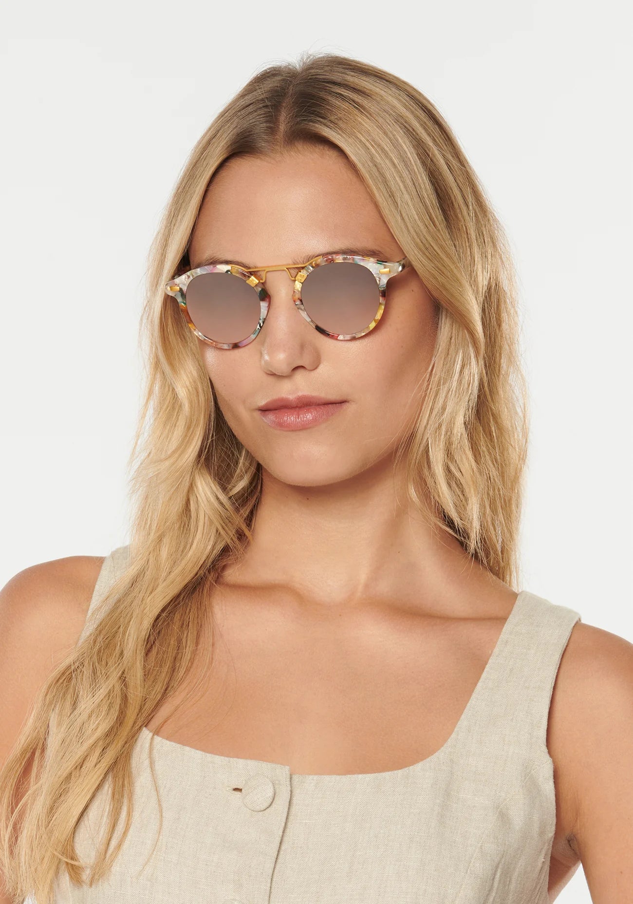 Our iconic classic. Inspired by the historic cast-iron balconies found in New Orleans’ French Quarter, the ST. LOUIS’s rounded silhouette complements every face shape while its distinct brow and mirrored lenses upgrade y’alls everyday uniform. Easy wear is a given with sturdy-yet-comfortable supports at the nose and temples.