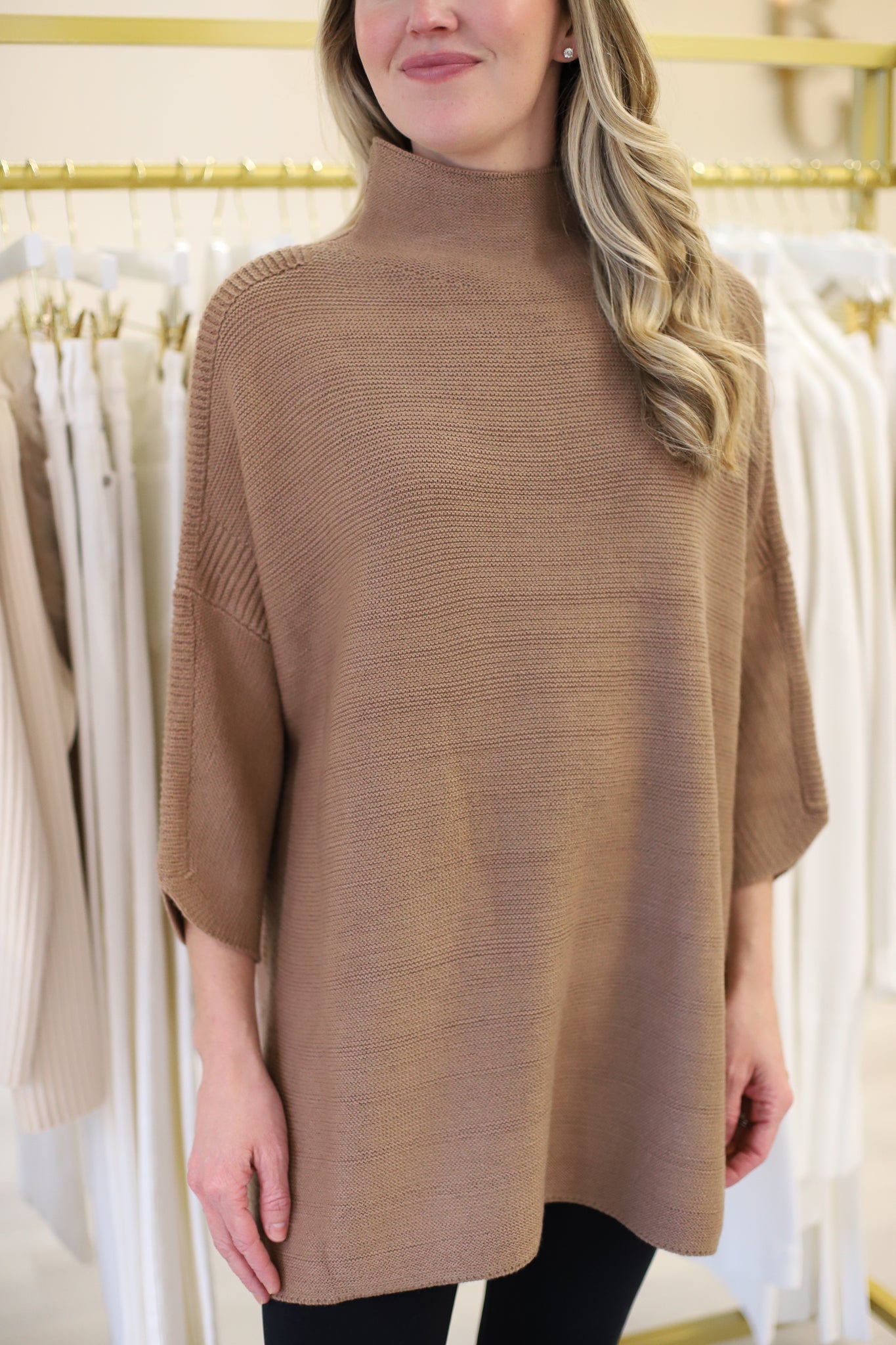 The sophisticated silhouette, side slit detail, and contrasting rib pattern are what make this piece a must-have for fall and winter! You will find yourself living in this sweater with jeans and leggings. You might need more than 1 color!