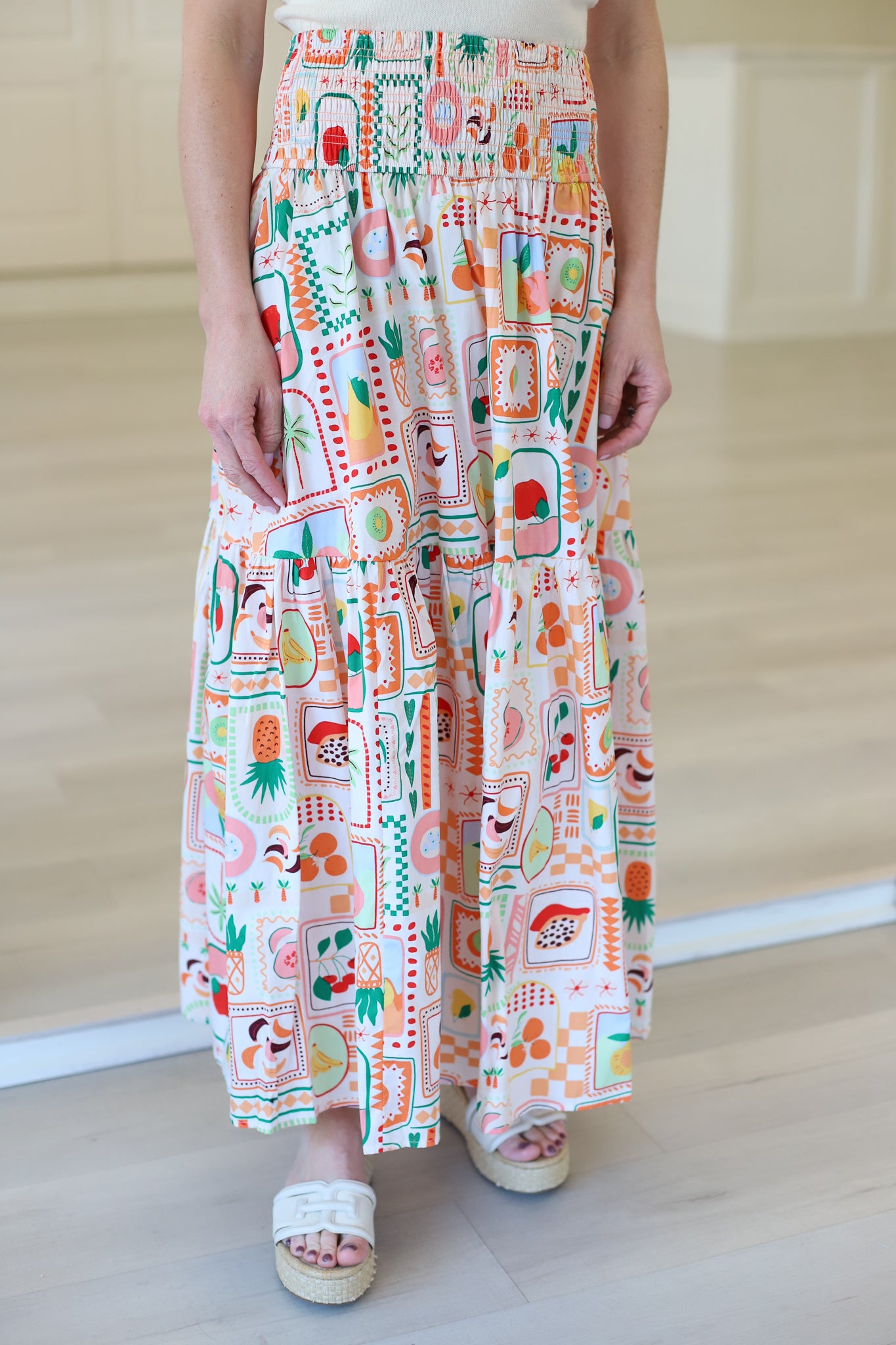 Fruit Basket Smock Waist Maxi Skirt