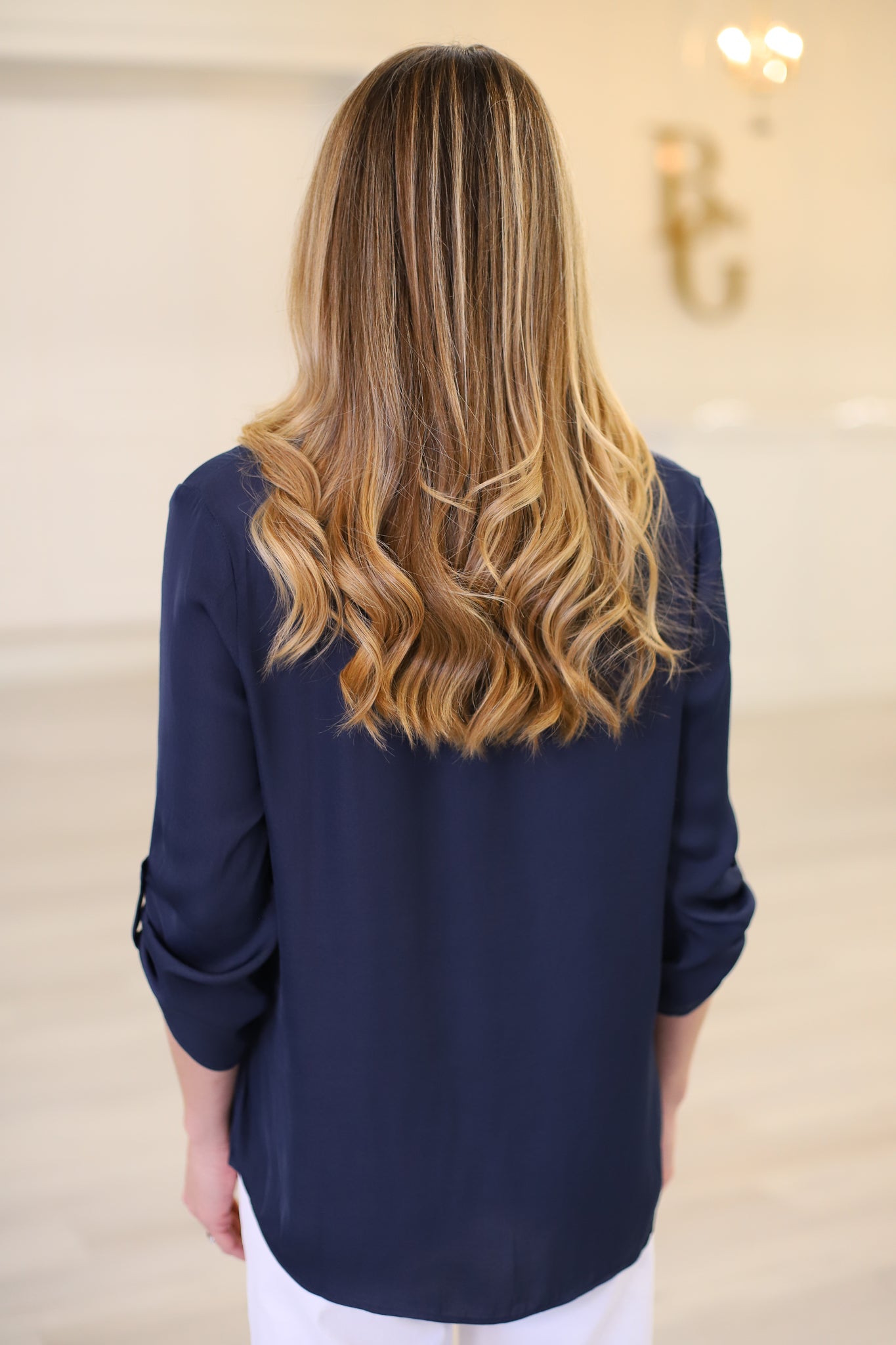 Indigo Cuffed Button Blouse