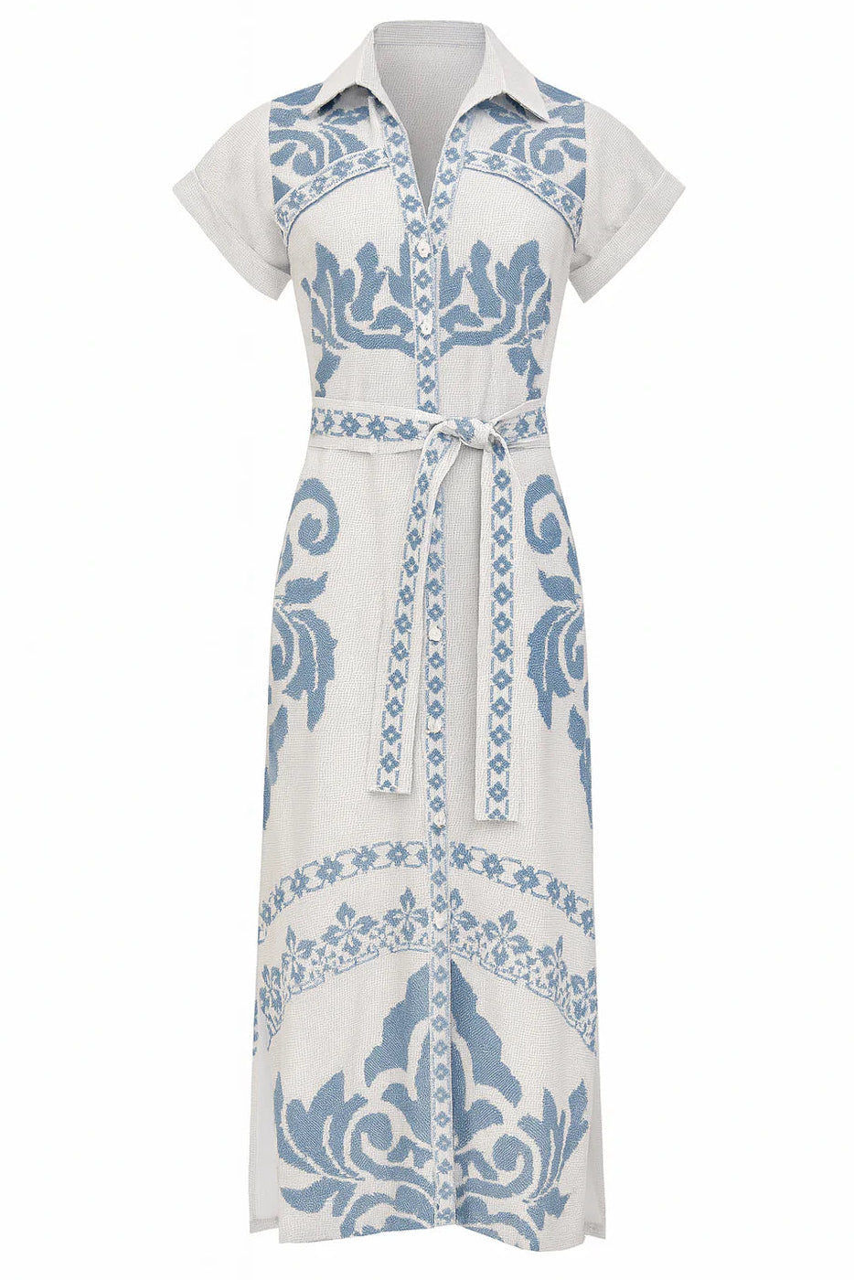 The needlepoint inspired detail on this dress makes it so unique and elegant! A gorgeous option for church, luncheons, and showers!