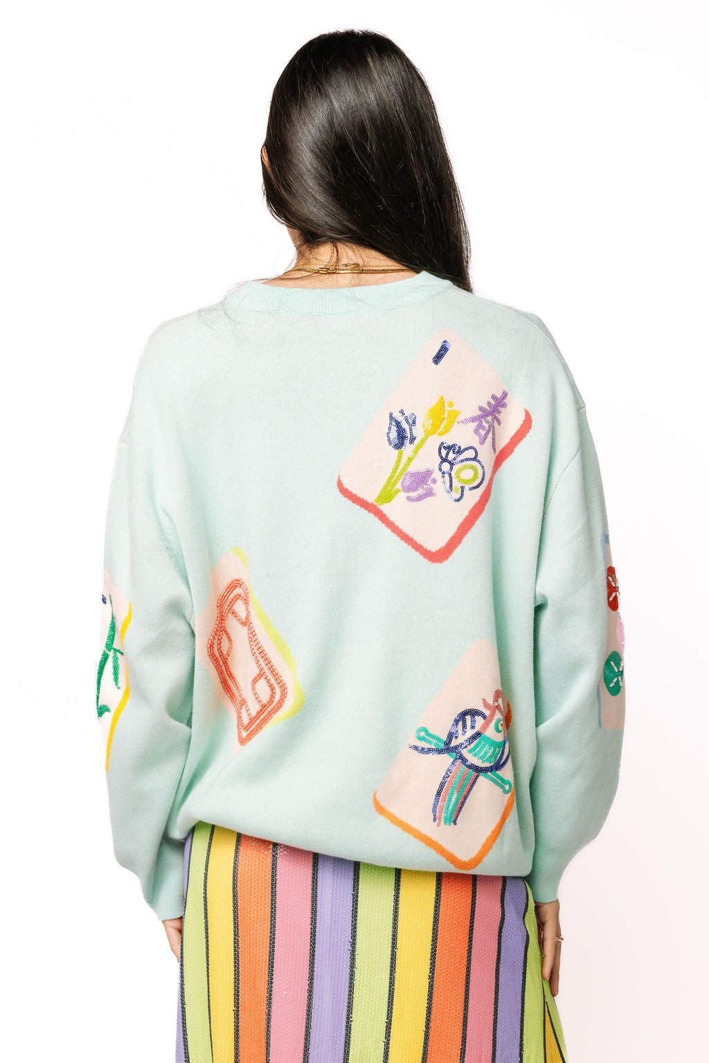 Queen of Sparkles Light Blue Mahjong Tile Knit Sweater