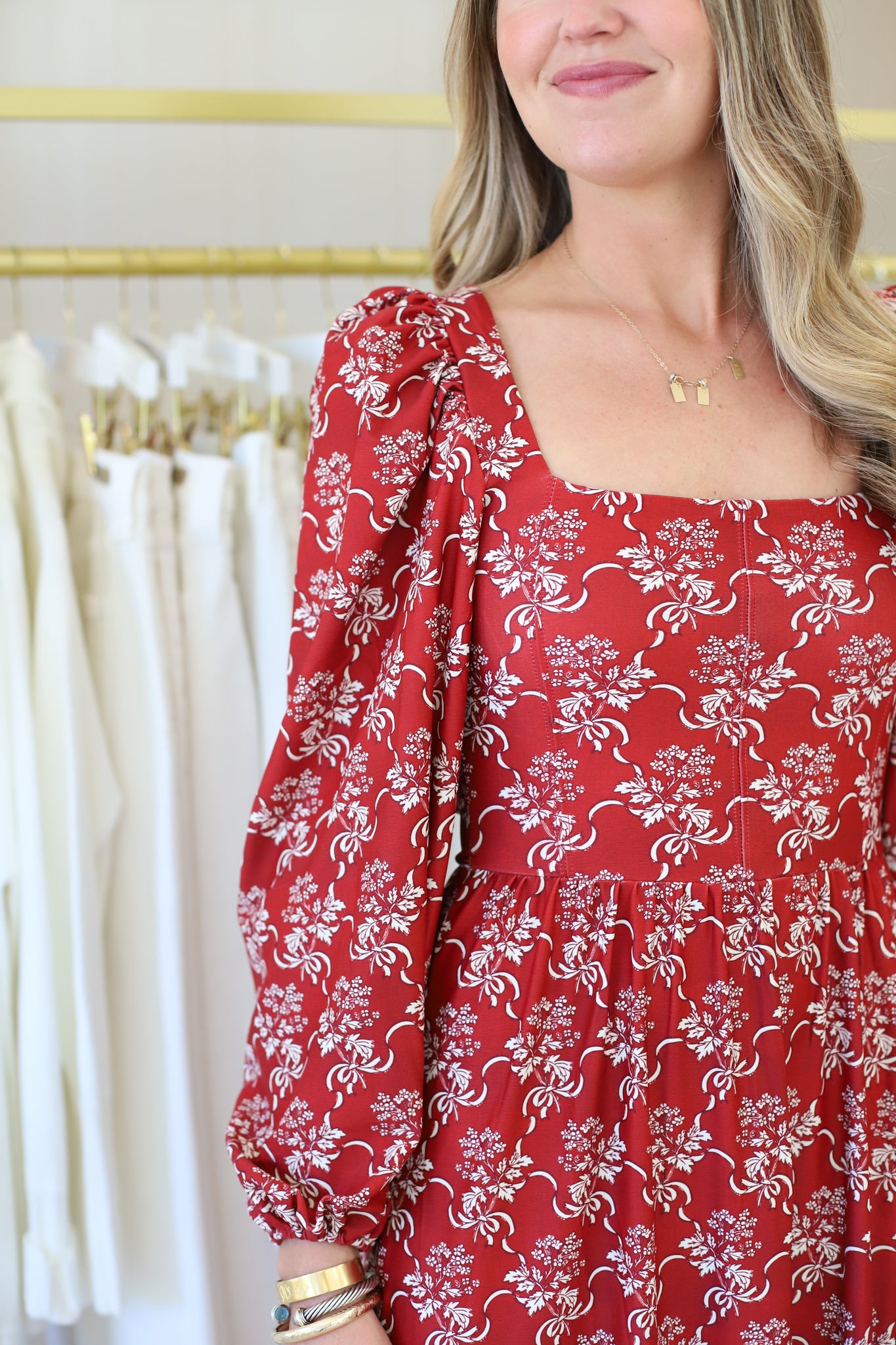 Meet the Natalie! The flattering silhouette features a faux boning on the bodice for a figure flatting, slimming shape with a gorgeous bottom tier. Oversized puff sleeves make this romantic midi a favorite of the season.
