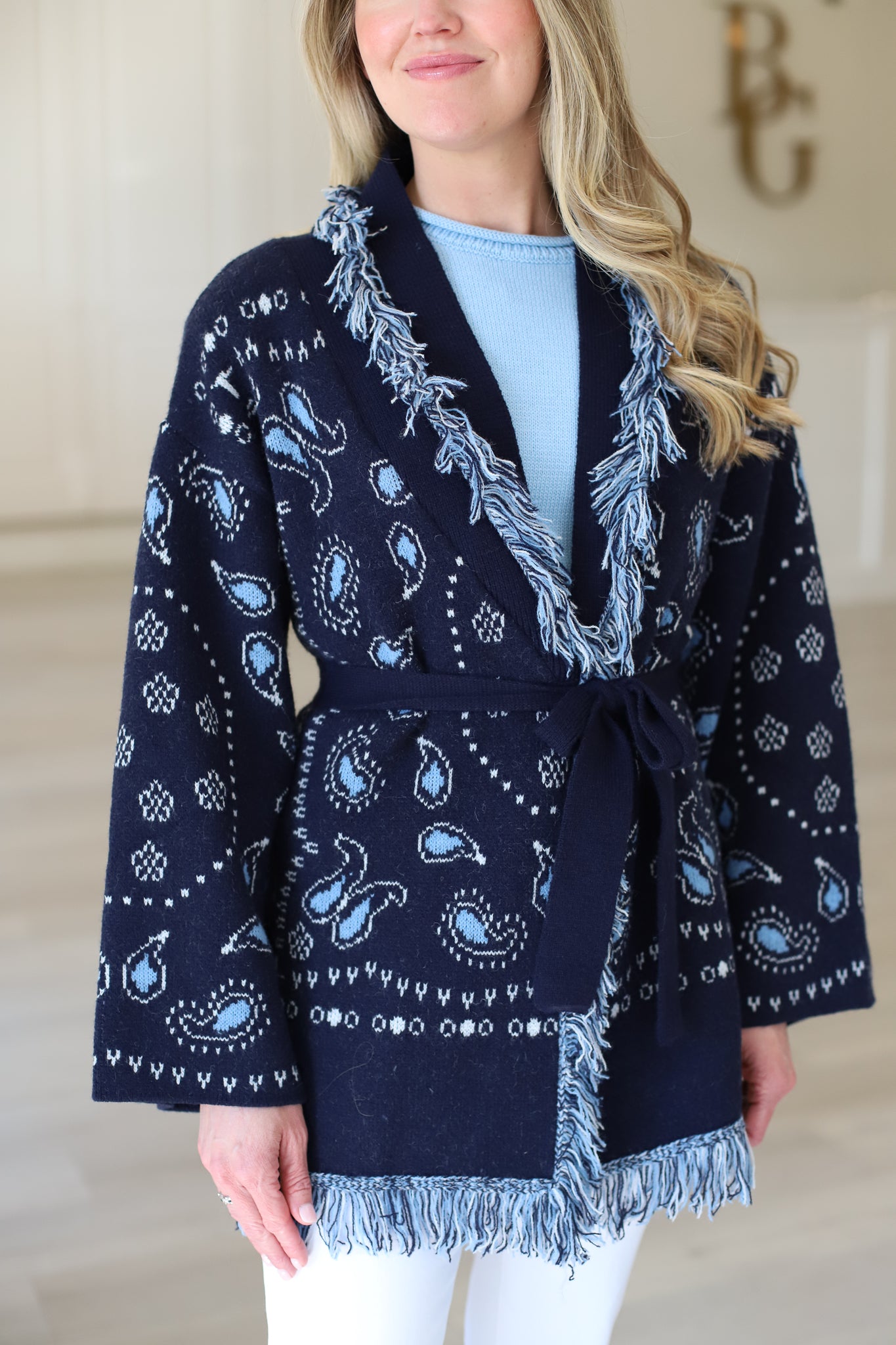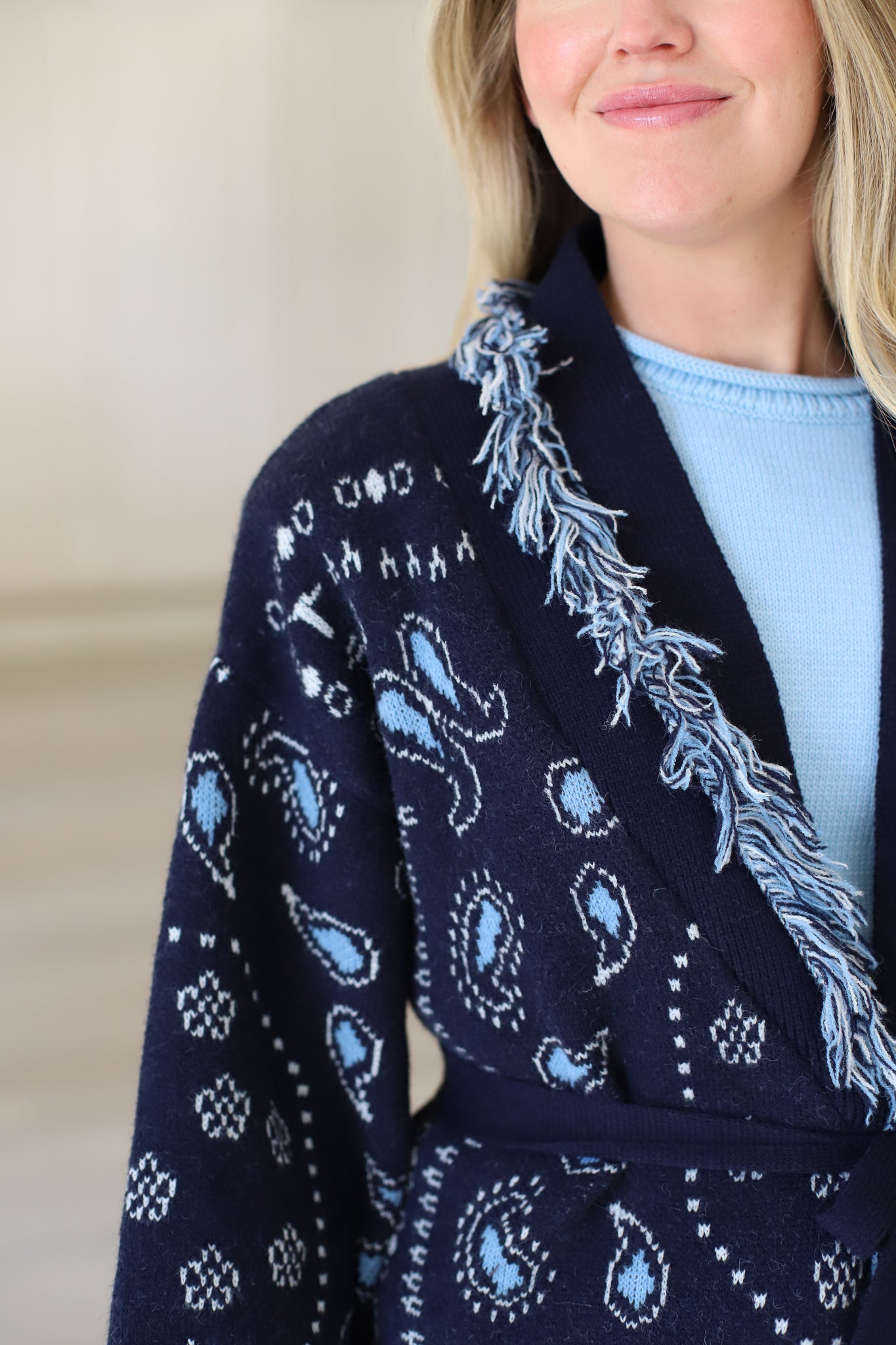 Navy Fringe Cardigan