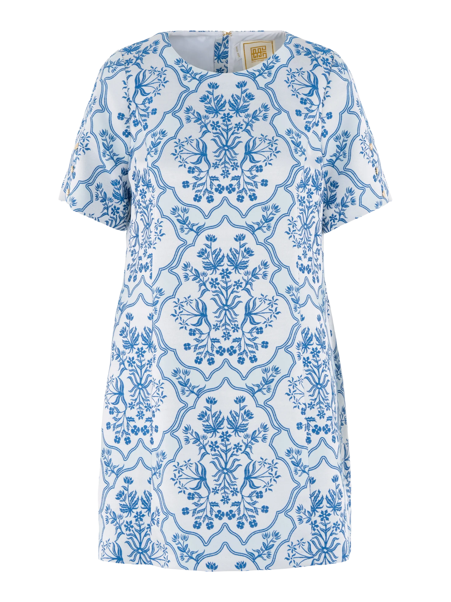 The Royale Shift in Royal Tapestry is a classic silhouette elevated with thoughtful detail. Designed with short sleeves accented by our signature gold buttons and a subtly tailored shape, it offers a flattering fit that feels precise yet approachable. The Royal Tapestry print reimagines classic Indian block florals through a richly woven jacquard, bringing heritage-inspired motifs to life with striking texture and depth.