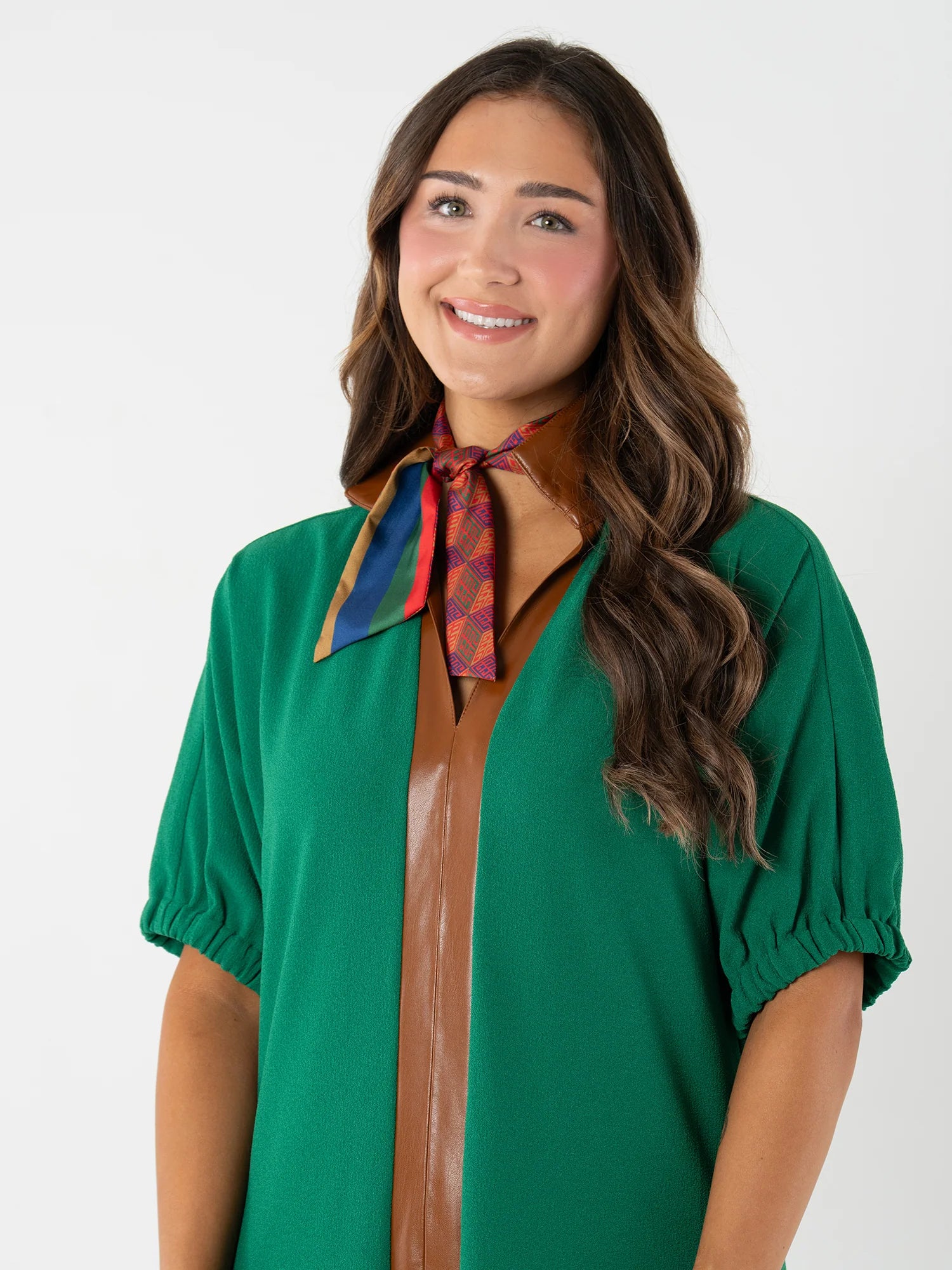 The Vintage Monogram Scarfette is a refined two-sided silk accessory with endless styling potential. Crafted from 100% silk and finished with hand-stitched edges, one side showcases our mirrored Vintage Monogram print, while the reverse offers crisp stripes inspired by the trim details of our apparel. Perfect for tying at the neck, wrapping around a handbag, or wearing as a hair accessory.