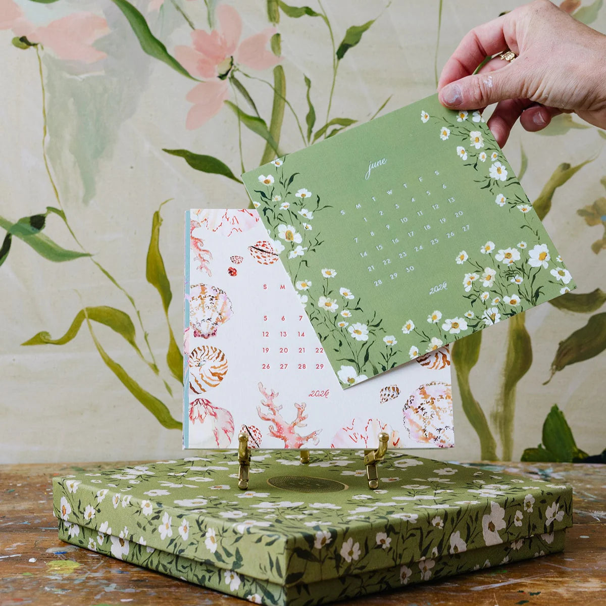 2026 Calendars are in stock and ready to ship! Twelve watercolor designs and letter-pressed numerals on 6" square cards. Nestled in a collectible linen box.