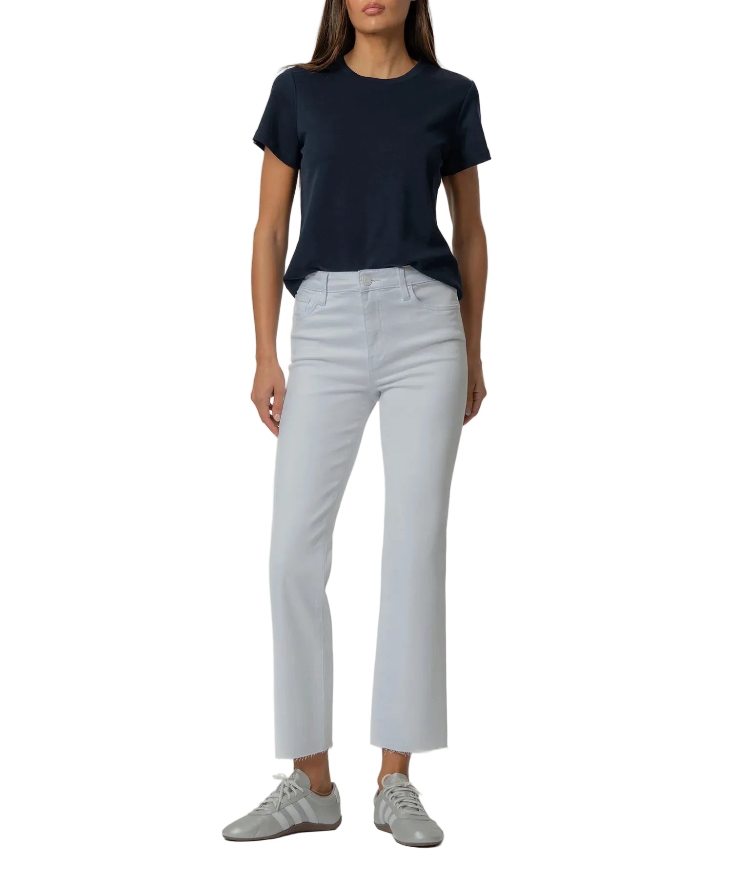 Refresh your wardrobe with these high-rise ankle flare jeans in stunning optic white. Designed with stretchy material, they deliver a perfect balance of comfort and contour. The clean optic white finish and modern ankle flare silhouette make them a must-have for effortlessly polished style.