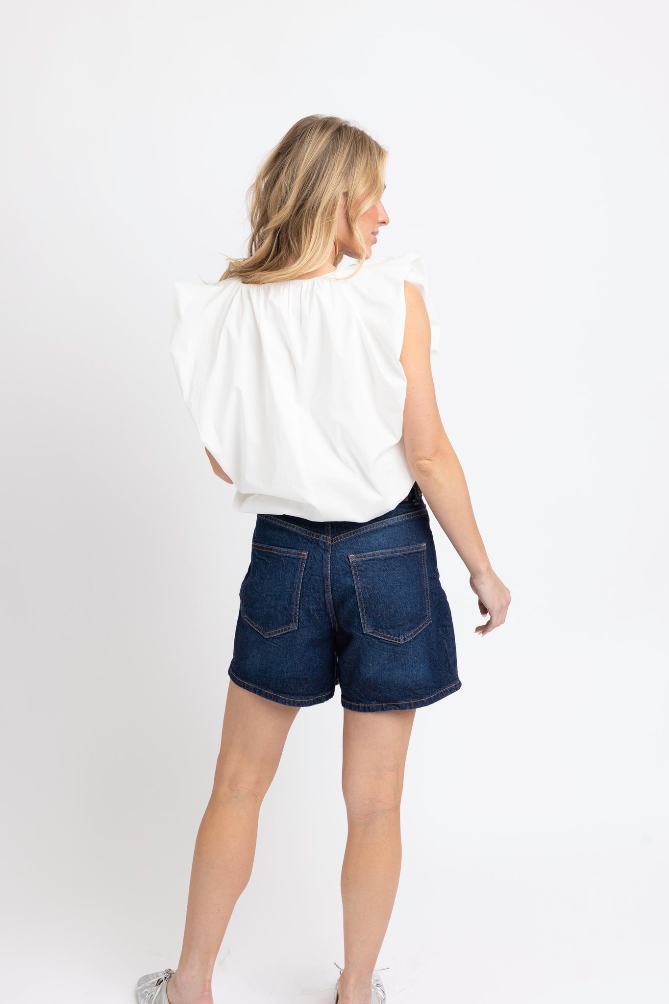 Solid Poplin V-Neck Bubble Top