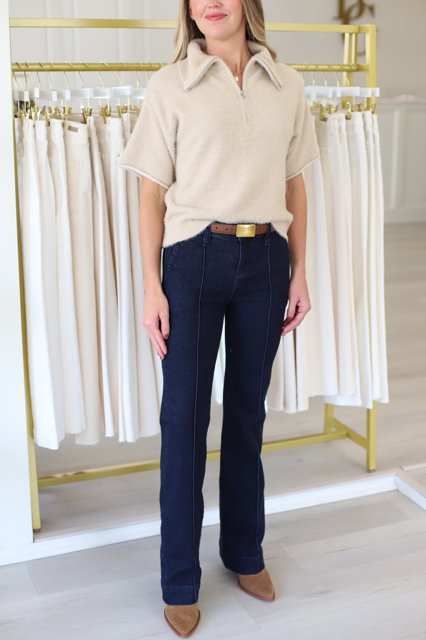 • Set-in waistband with belt loops