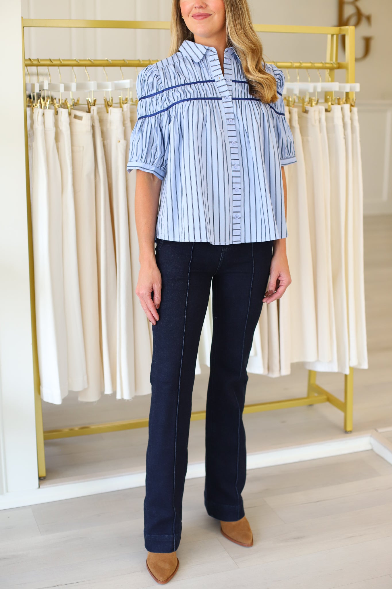 Structured yet effortless, this wide-leg trouser in a deep indigo rinse blends denim’s versatility with refined tailoring. Subtle seam details elongate the leg, while clean lines make it a go-to for work or weekends.