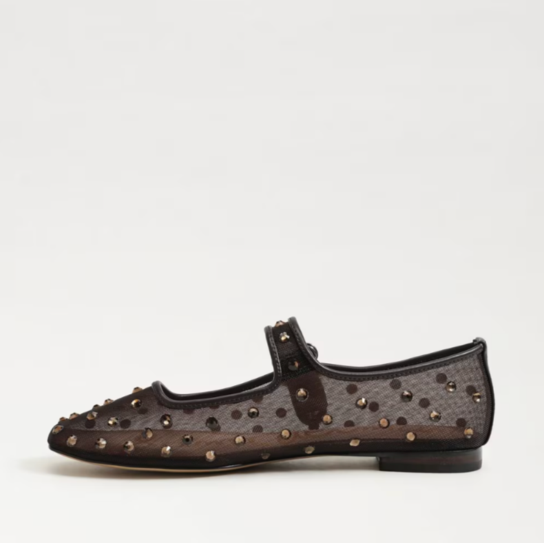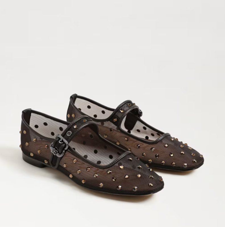 Michaela Shine is a delicate mesh Mary-Jane with rhinestone details. The pair to breathe new life into all your floral and flowing skirts.