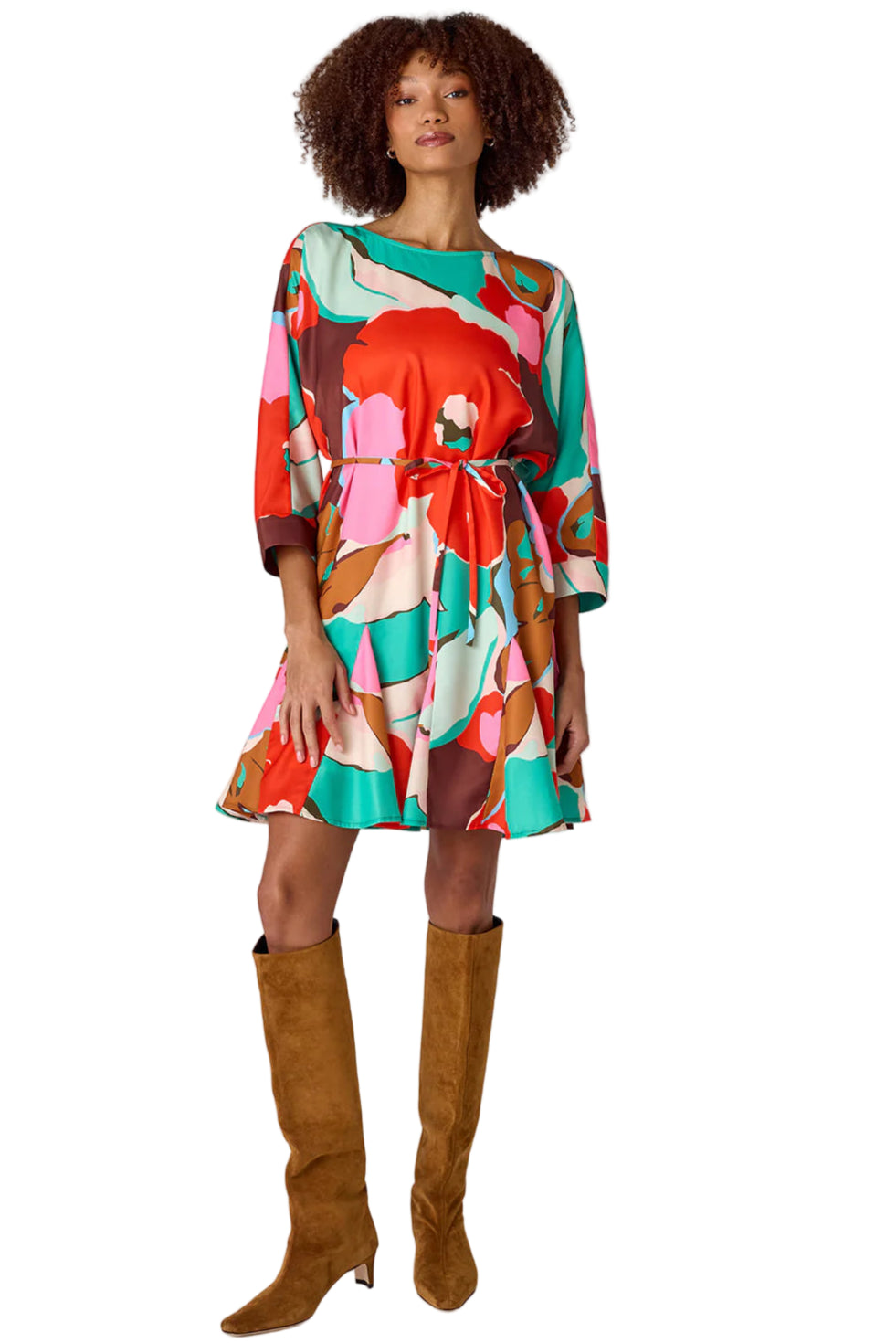 Designed with a flattering tapered waist, ¾-length dolman sleeves, and a playful flouncy hem, this silhouette is a must-have.